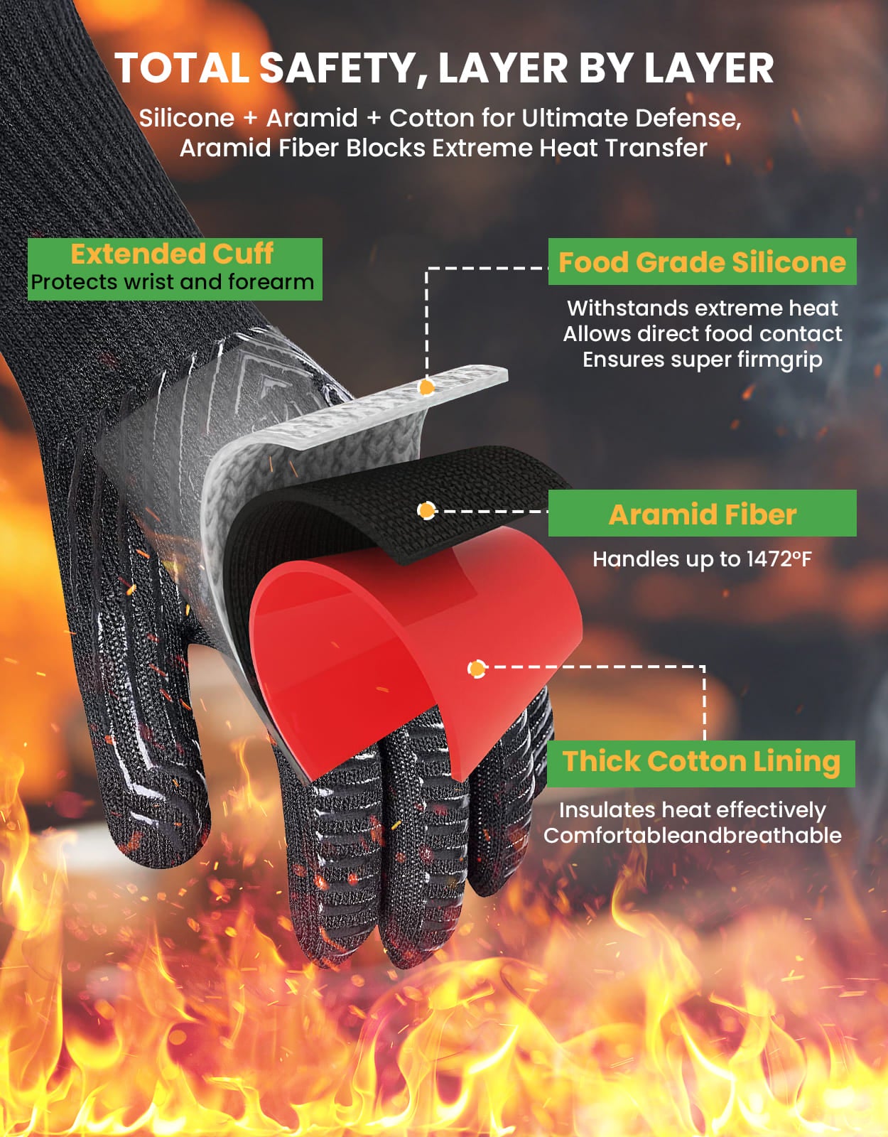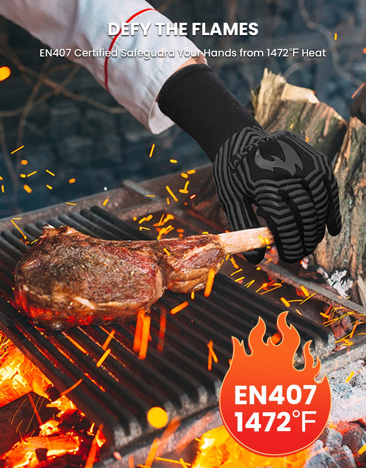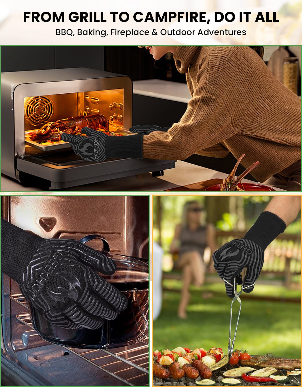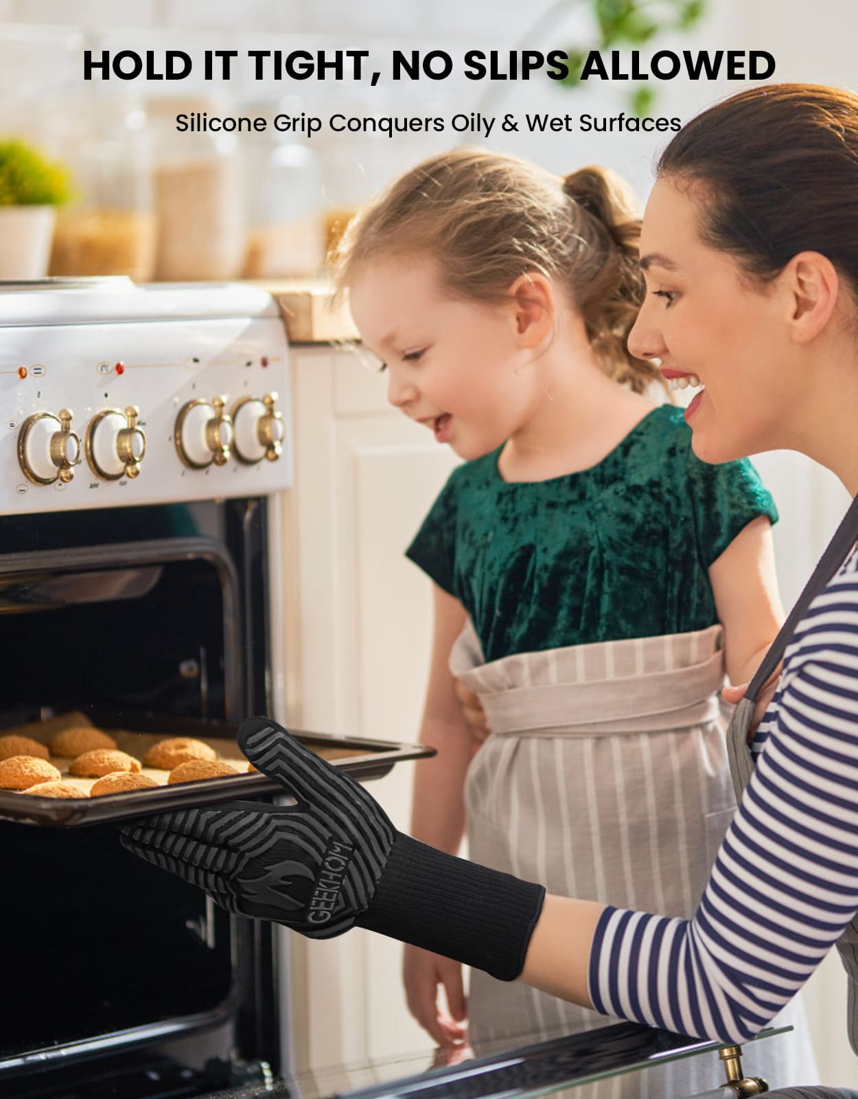 GEEKHOM BBQ Gloves, 1472℉ Heat Resistant, Non-Slip, Kitchen Safe