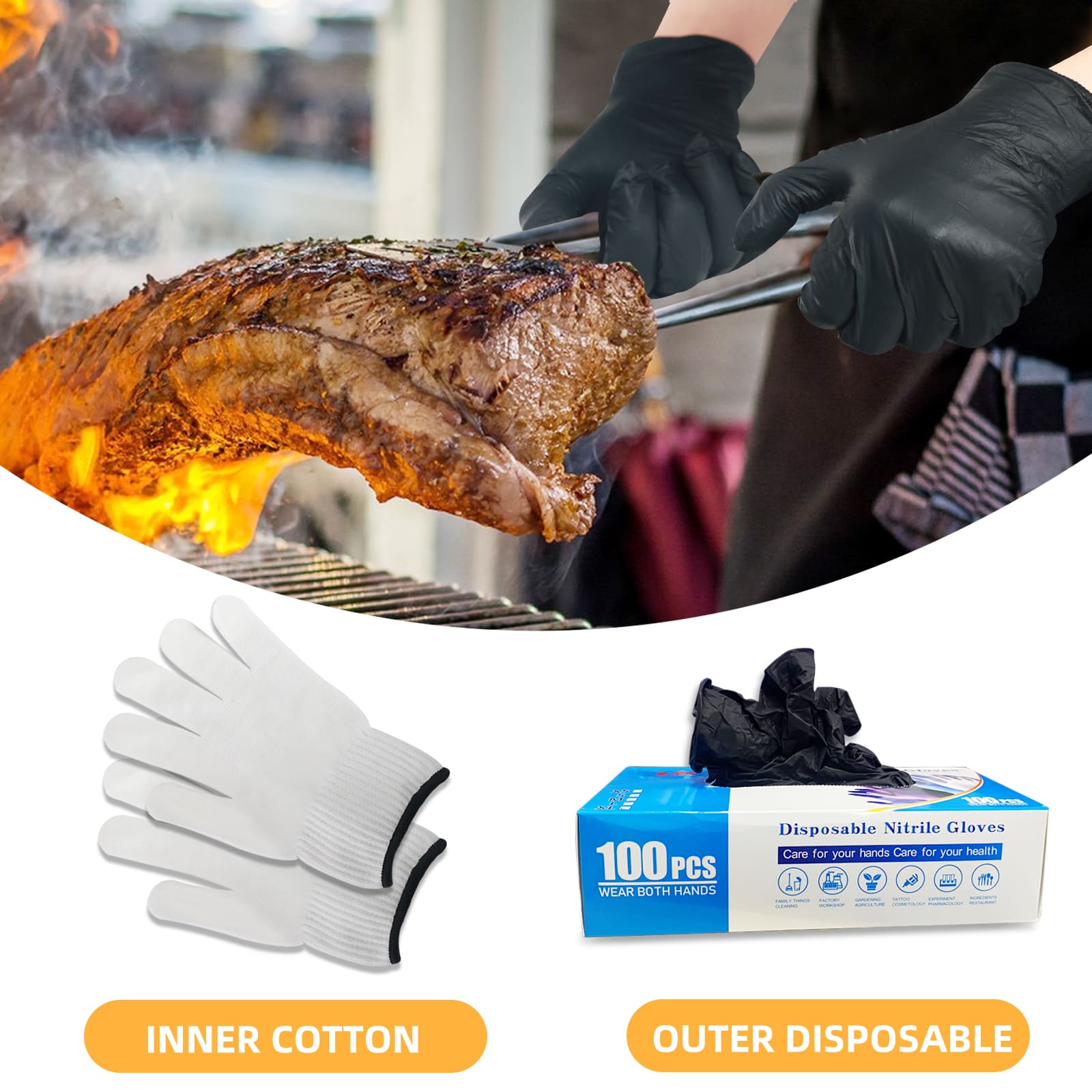 GEEKHOM BBQ Gloves Set, 100PCS, Reusable, Nitrile & Cotton, Heat Resistant