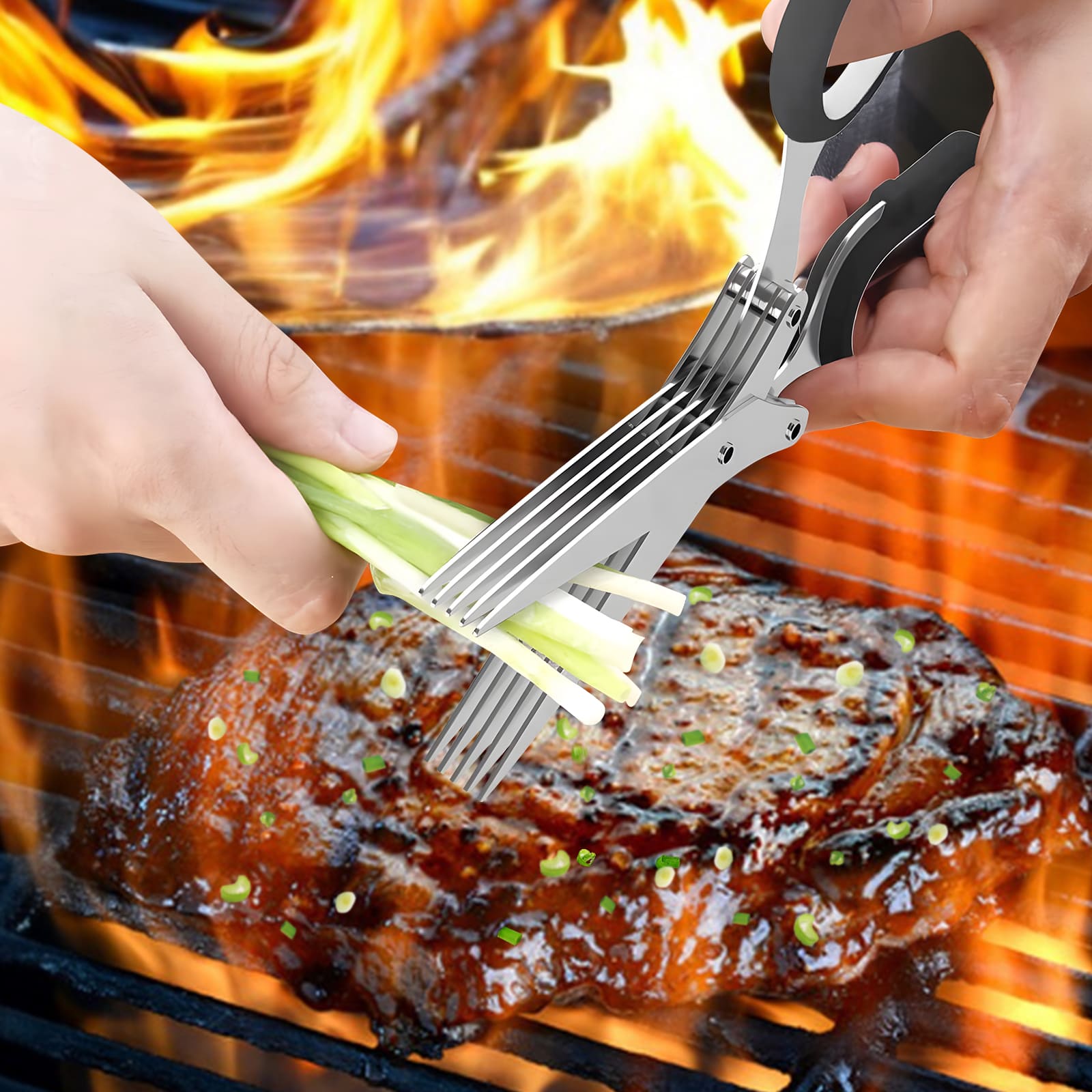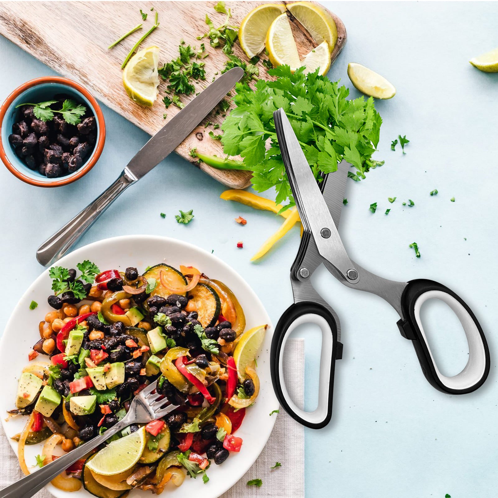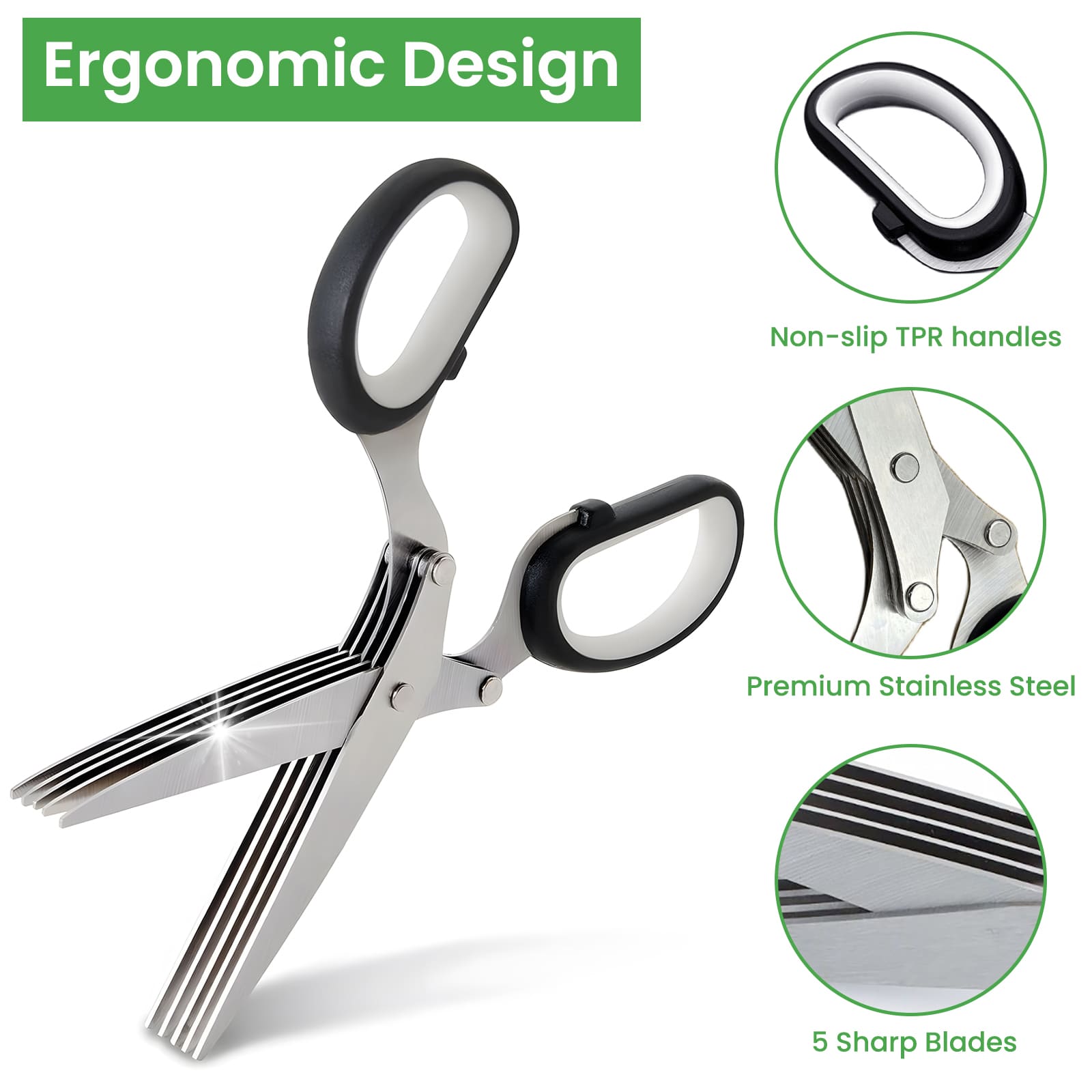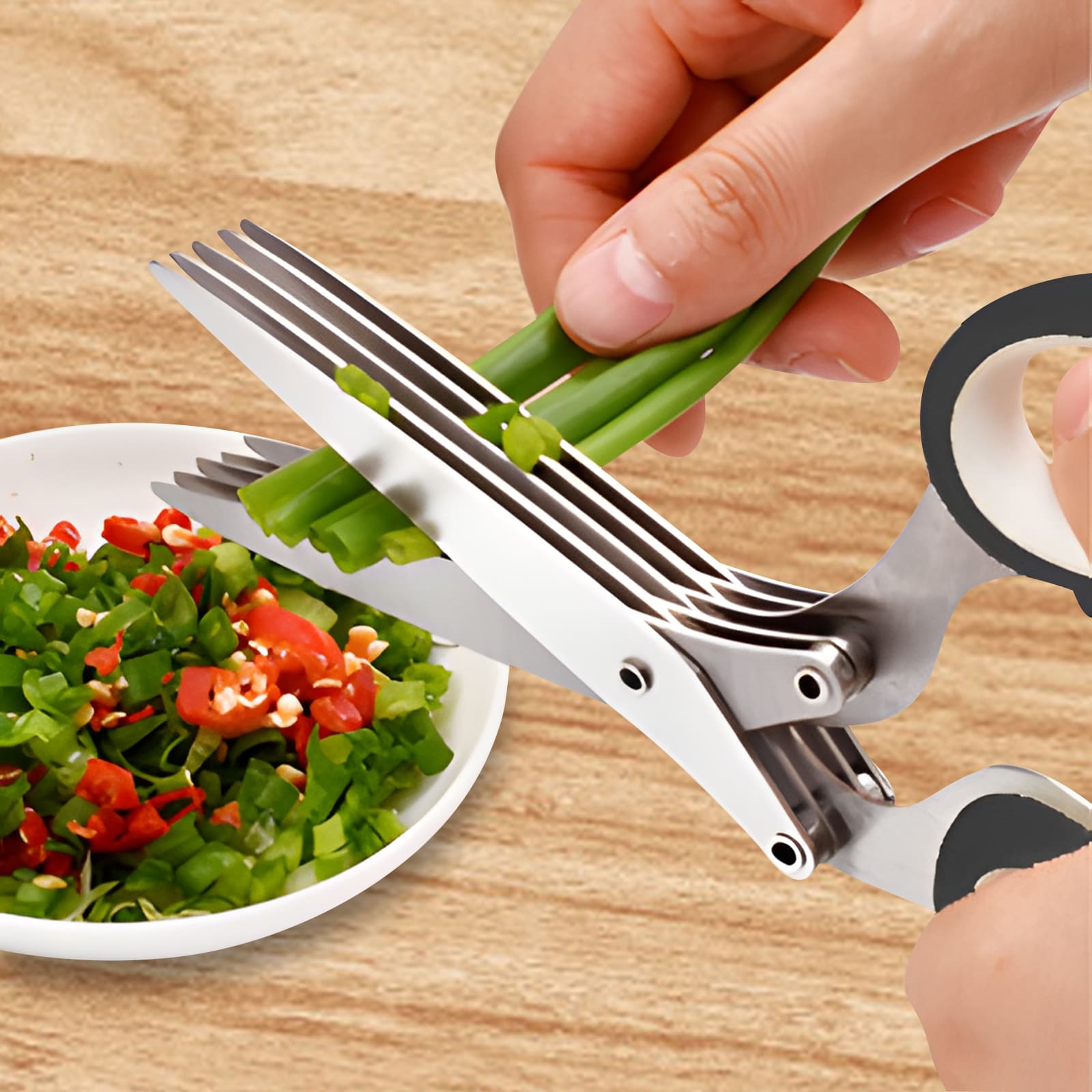 - 【5 Blade Herb Scissors】 GEEKHOM Herb Scissors can quickly cut vegetable stems into pieces. Non-slip grip handle with 5 extra-sharp stainless steel blades. These comfortable and super sharp scissors will make food preparation easier and faster. They can also be used for cutting paper.
