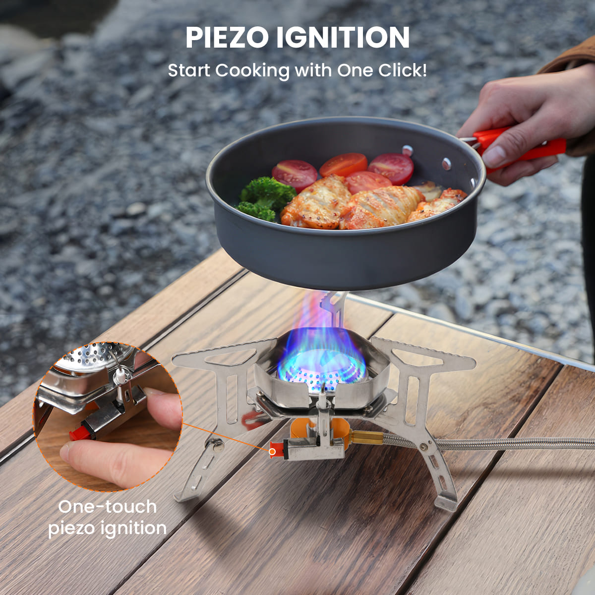 - Instant Piezo Ignition & Precision Control: One-push ignition system operates reliably in damp conditions; Smooth rotary knob adjusts from gentle simmer to full 3800W power; Copper core regulator ensures consistent flame control