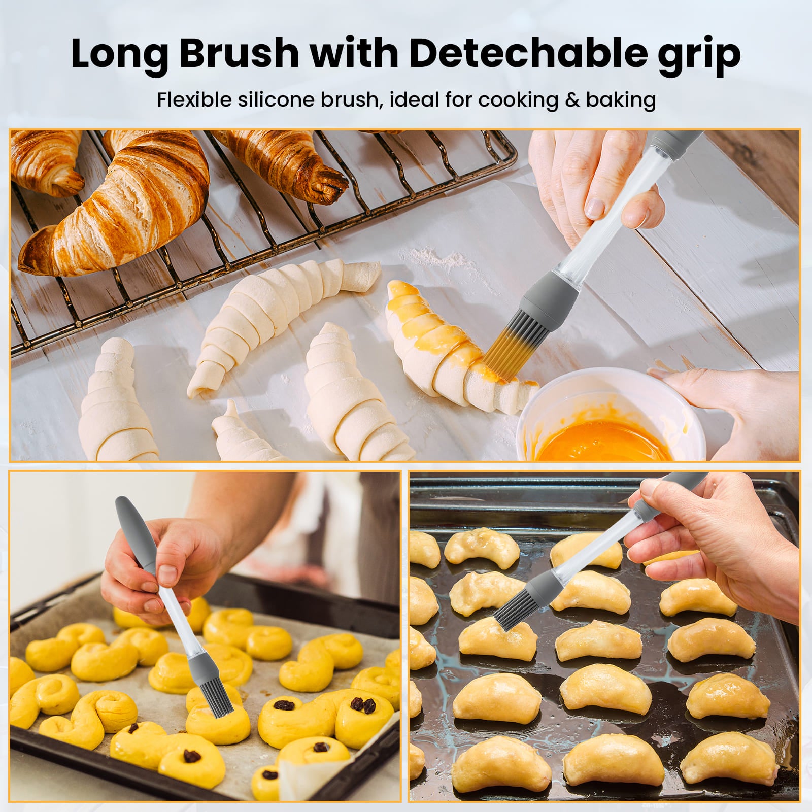 - Wide Applications: The large pastry brush with long handle is perfect for BBQ grilling, keeping your hands away from heat; Great for vinegar, hot butter, egg whites, margarine, oil, basting sauce, BBQ sauce, butter glazein kitchen cooking, baking, barbecue