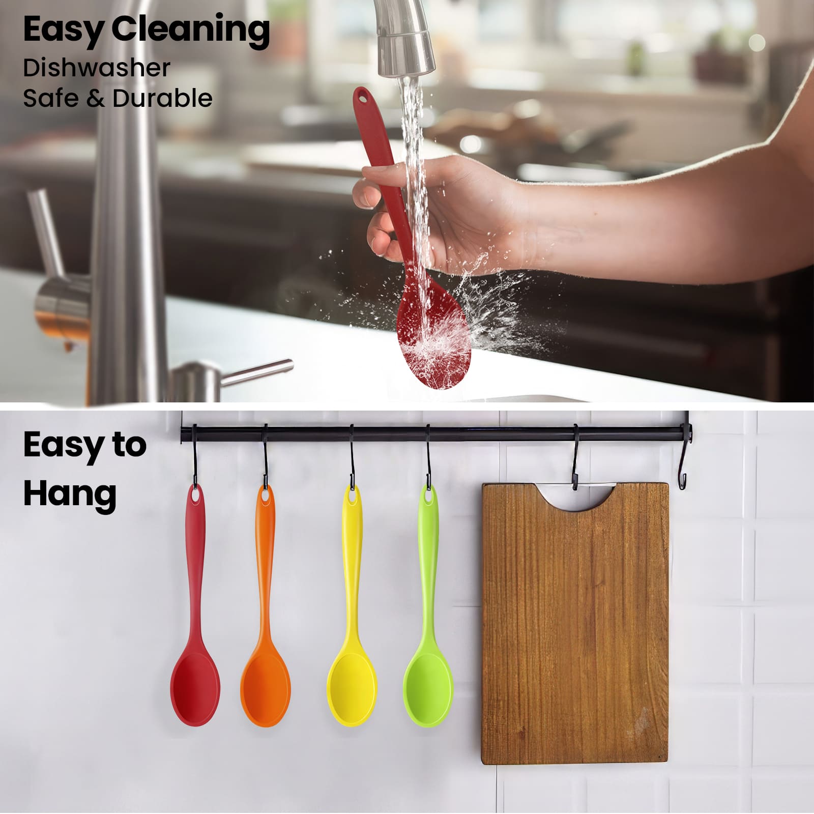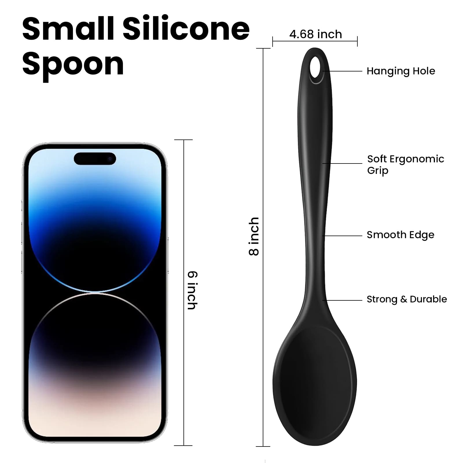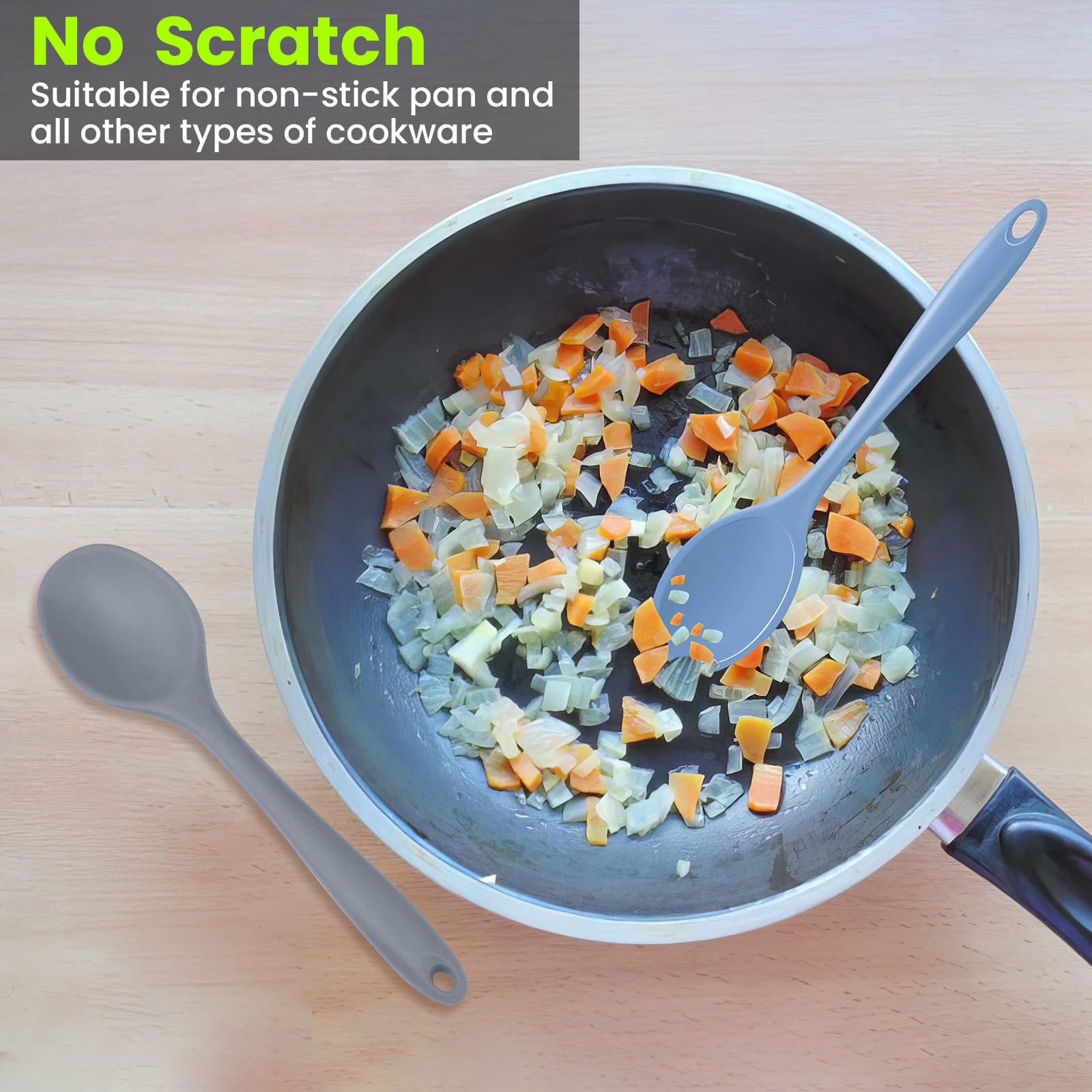 GEEKHOM Silicone Cooking Spoons, 2 Pcs, 11", Heat Resistant, for Cooking, Black